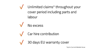 You can buy a warranty for 3-36 months at a range of claim limits and cover levels based on the age and mileage of your vehicle.